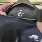 This Nike Dri-Fit T-shirt is a must-have for any sports enthusiast. With a block Futura logo accent, this black, long-sleeved shirt is perfect for the fall and spring seasons. Made of cotton and knit fabric, it is easy to care for and machine washable. The shirt features a collared neckline and a loose fit, making it comfortable to wear during any sporting activity. It is a regular size type and fits true to size. The shirt is part of the Nike Dri-Fit product line and was manufactured in Vietnam between 2010-2019. Don't miss out on this stylish and functional piece!