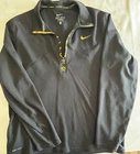 This is a Nike Livestrong Dri-Fit 1/4-Zip Pullover Jacket in size L for men. It features long sleeves, a pullover style, and a black color. The jacket is made of 100% polyester with a lining of the same material. It has a pocket and is designed for activewear use. The brand is Nike and the style is a basic jacket.