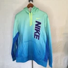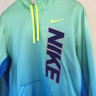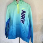 This is a Nike Lacrosse men's Dri-Fit hoodie in size L. It features long sleeves, a pullover style, and a multi blue/green color scheme. Made of polyester, this machine washable hoodie has a regular fit and is suitable for lacrosse activities. It is designed for men's activewear and comes from Sri Lanka. Fantastic condition with very minimal signs of wear. Fleece like lining. Pit to pit 25" Top of shoulder to wrist 29" Top of shoulder to bottom hem 30" Waist 24" Please see all photos. Contact seller for any questions.