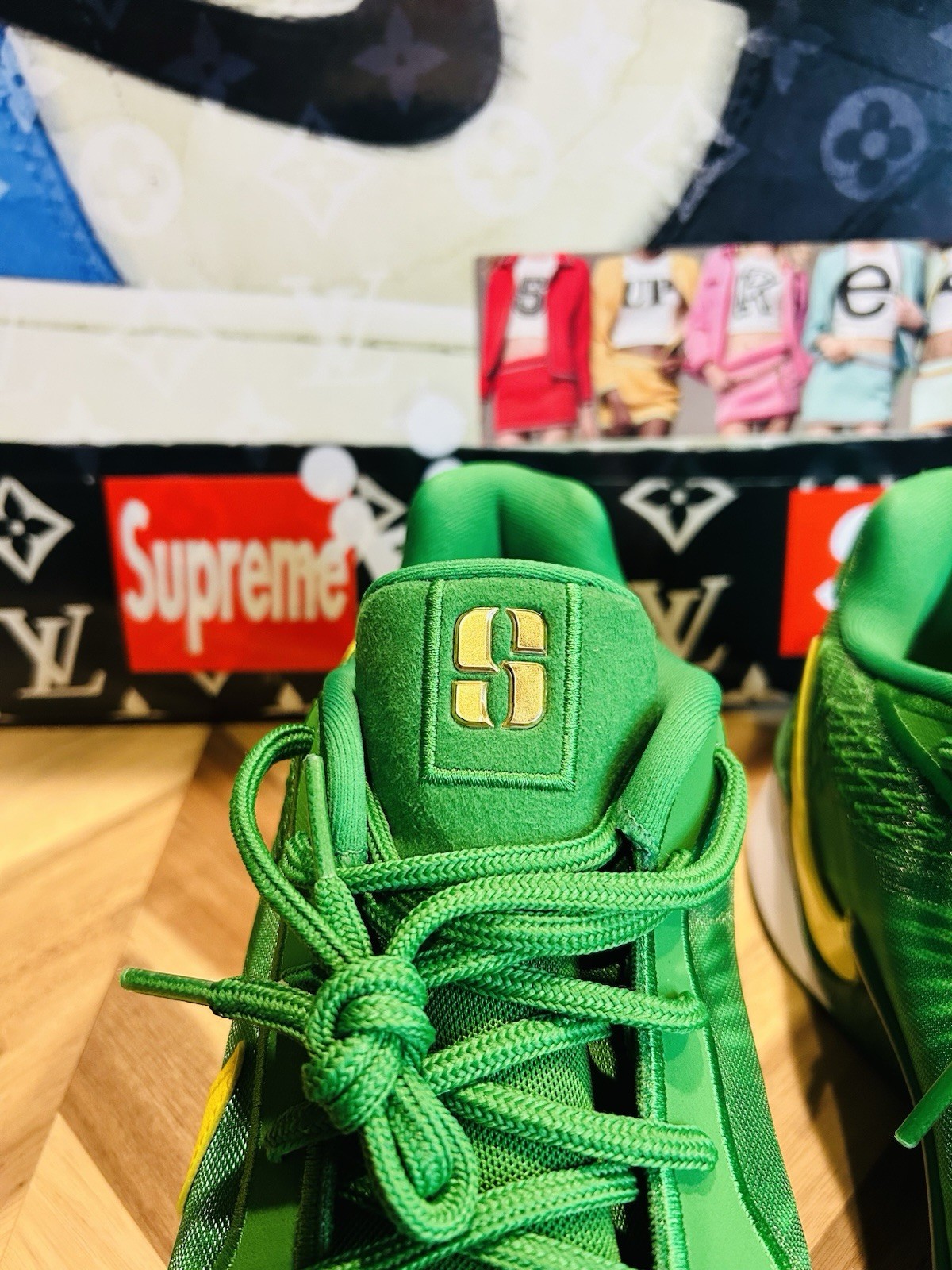 The NIKE SABRINA 2 OREGON DUCKS PE APPLE GREEN YELLOW HQ4344-300 Men’s 13 USA is a limited edition sneaker featuring a design inspired by the Oregon Ducks football team. Made with breathable mesh material and a comfortable rubber outsole, these athletic shoes are perfect for basketball players and fans alike. The design includes the official team logo and colors, making it a must-have for collectors and enthusiasts. With accents like the Nike swoosh and various brand collaborations, these sneakers offer both style and performance for those looking to stand out on the court or in the crowd.