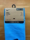 Elevate your game with the Nike Strike Knee-High Socks, specifically designed for the dynamic athlete. These socks feature a cushioned design to absorb impact, ensuring comfort with every step, stride, or shot. The Dri-Fit technology helps keep your feet dry and cool, making them a reliable choice for soccer, football, or any intense gym workout. Crafted for unisex kids and available in a striking blue color, these socks are a versatile addition to any sportswear collection. The combination of cotton, nylon, polyester, and spandex materials provides a snug fit that stays in place, while the solid pattern and knee-high style offer a classic look that's ready for any season. Thank you!
