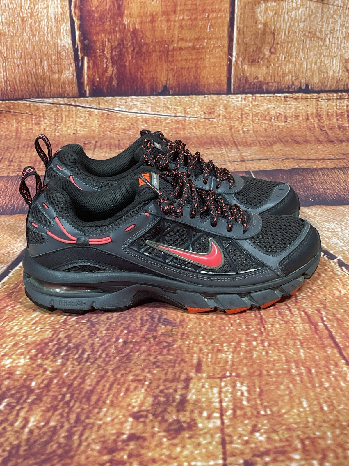 The NIKE Women's Trail Ridge Gray Pink 415446-003 Hiking Running Sneaker Shoes in size 7 are a stylish and functional choice for active women. These athletic shoes feature a sleek design with a gray color and pink accents, perfect for hiking and running. With custom options available, these sneakers are part of the Nike Run product line, designed for performance and comfort. The Trail Ridge model offers a sturdy construction suitable for outdoor activities, making it a reliable choice for women on the go.
