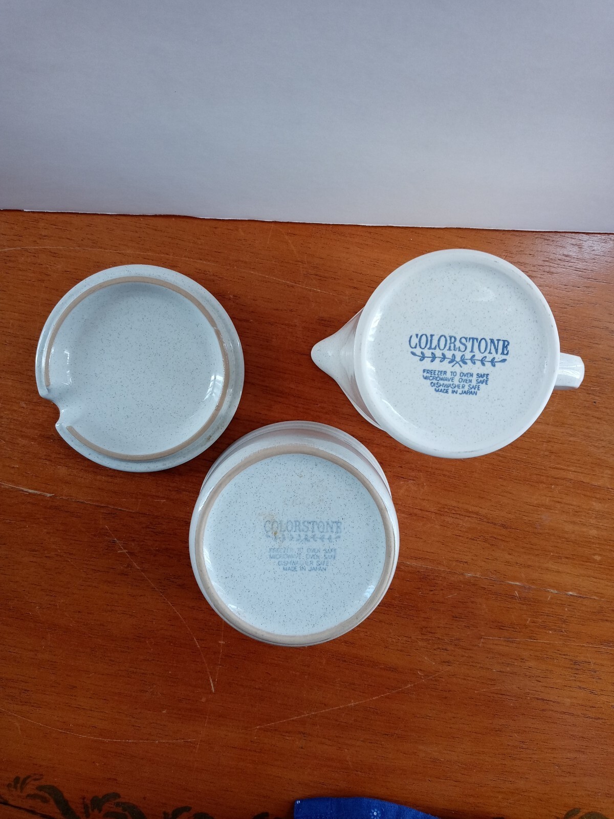 ColorStone Sugar bowl w/lid & Creamer by NIKKO. Cream color with brown trim. Trim color on creamer a little darker. Pre owned. Normal wear. No cracks or chips. See pictures for condition. Sold as is. Ships USPS