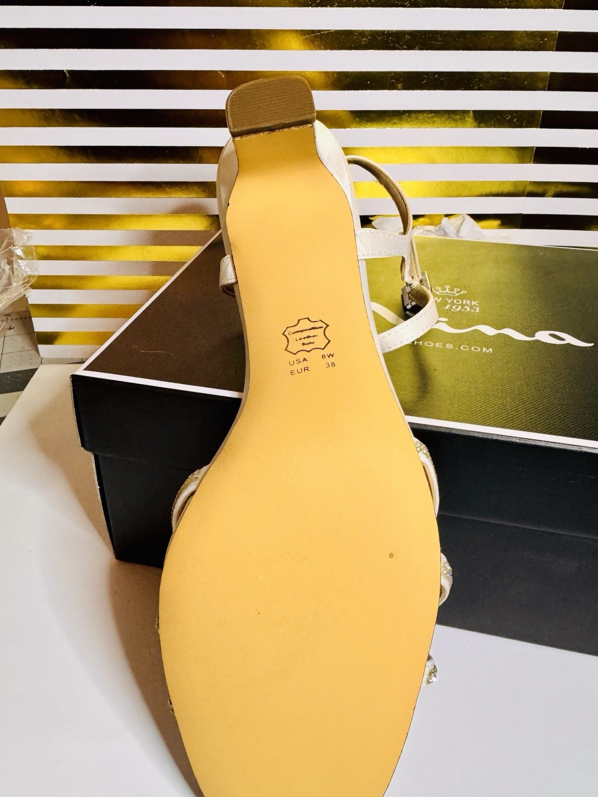 The NINA Bobby W Ivory Luster Satin Size 8W heel is a sophisticated and elegant choice for formal occasions. This pump features a solid ivory color with a block heel, perfect for summer, fall, and spring events. Made of satin with a W shoe width, this Nina heel is a stylish addition to any woman's wardrobe, offering both comfort and glamour for a seamless look.