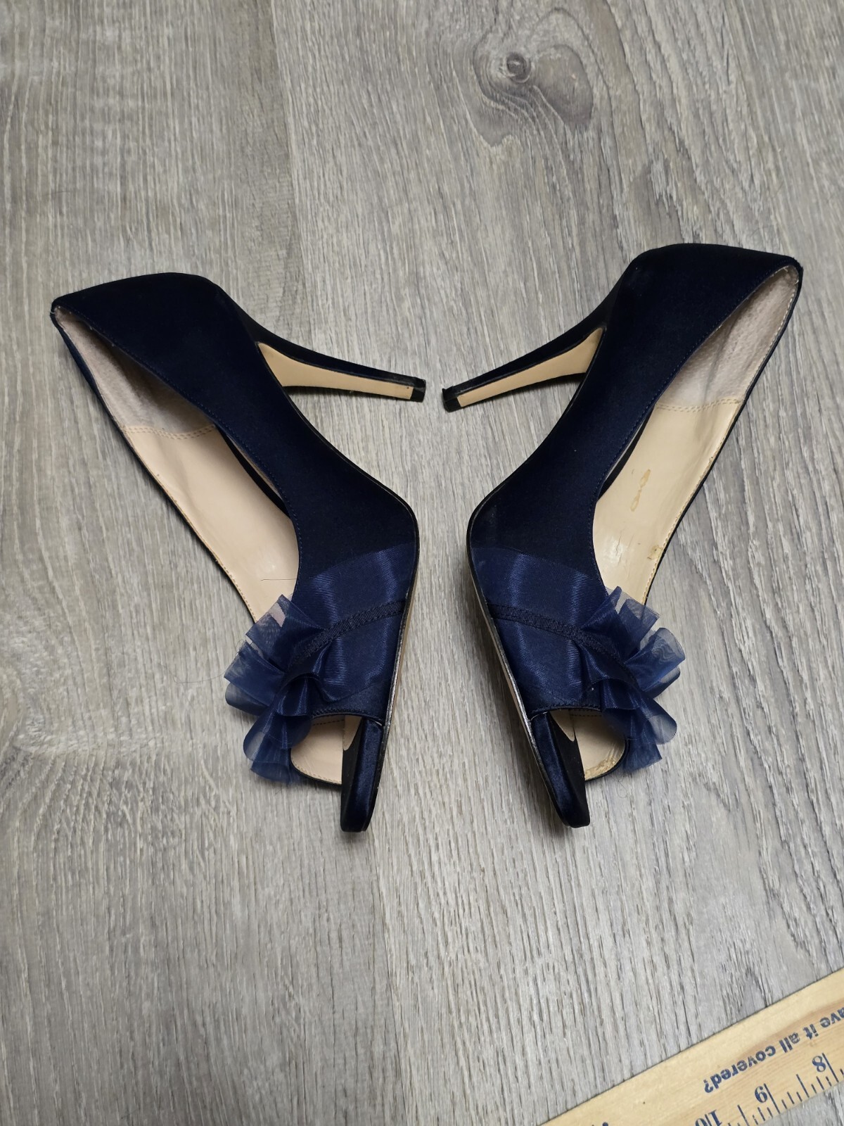 NINA New York Women's Blue Ruffled Open-toe High Heels Size 9.5M
