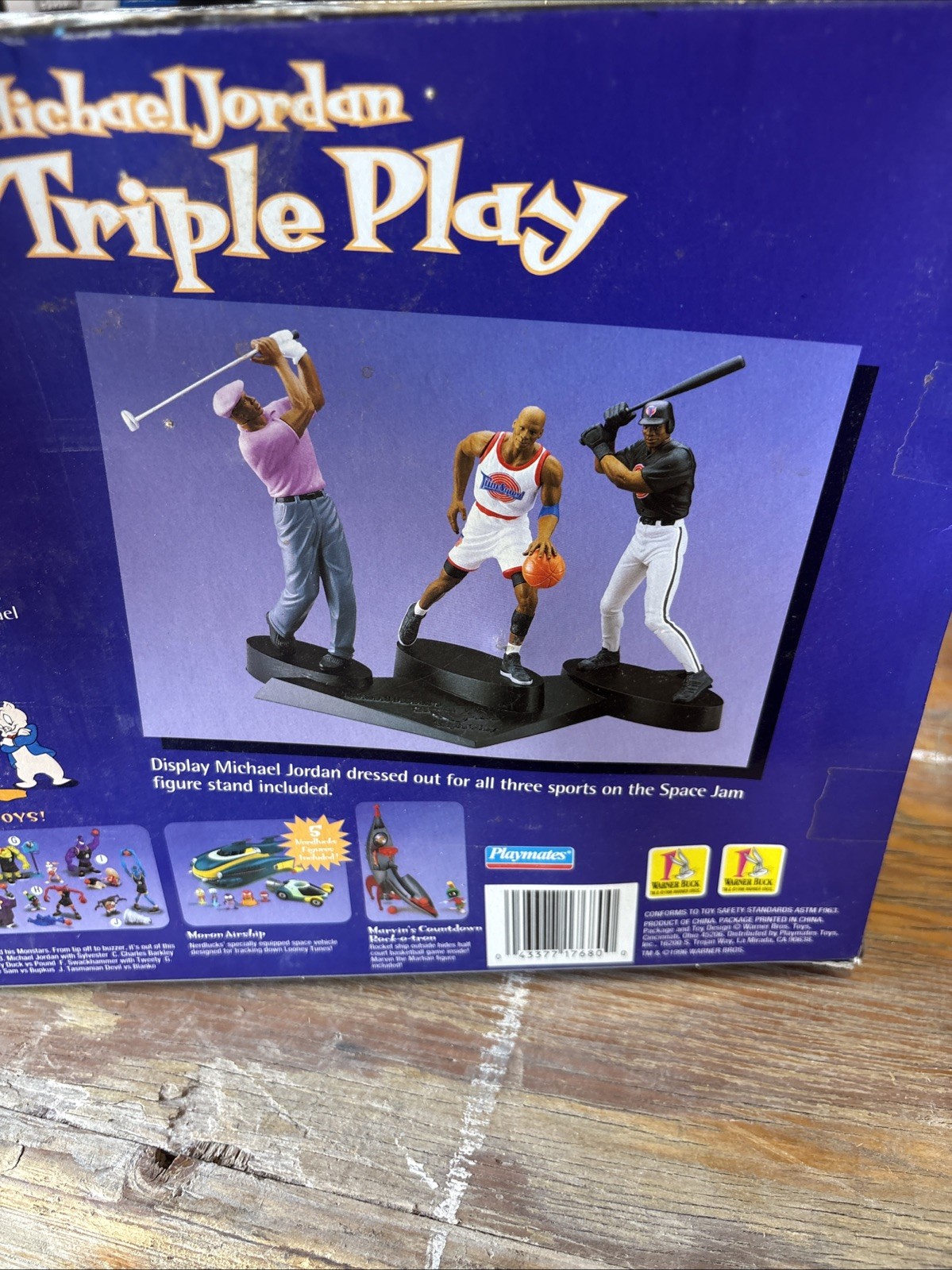 Elevate your collection with the Space Jam Michael Jordan Triple Play Figures by Playmates Toys. Celebrate the iconic moment when Michael Jordan faced off against the greatest basketball players from the gym in a battle of skill and wills. These action figures are based on the 1996 classic movie "Space Jam" and are a must-have for fans and collectors alike. Each figure showcases Jordan in his prime, complete with the details that make this character a true representation of the legendary athlete. The set comes with three distinct poses, allowing you to display Jordan in action or rest him on the shelf alongside other cherished items from the Space Jam franchise. Add a piece of sports history to your collection today.