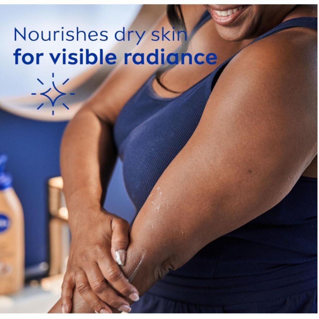 About this item Product details Reveal soft, radiant looking skin with NIVEA Cocoa Butter Body Lotion. This daily body lotion for dry skin nourishes dry skin for visible radiance and provides 48 hour deep nourishing moisture. The NIVEA cocoa butter lotion is infused with Deep Nourishing Serum, cocoa butter and Vitamin E, for healthy looking skin and lovely cocoa butter scent. The dry skin lotion smoothes away dullness after just one application. NIVEA is proud to be one of the leading companies in the field of skin care products, with more than 100 years of experience. NIVEA lotion with cocoa butter is a key part of a skincare routine and pairs well with NIVEA Body Wash as part of a daily skin care regimen. This body lotion is ideal for those with very dry skin, and can also be used as a hand lotion or foot lotion. To use, apply NIVEA Cocoa Butter Body Lotion daily. One 16.9 fluid ounce pump bottle of NIVEA Cocoa Butter Body Lotion Cocoa butter lotion nourishes dry skin for visible radiance and provides 48 hours of deep nourishing moisture Scented lotion infused with NIVEA Deep Nourishing Serum, cocoa butter and Vitamin E for healthy looking skin NIVEA Cocoa Butter Body Lotion is ideal for those with very dry skin, and can also be used as a hand lotion or foot lotion Lotion pump bottle makes this NIVEA body lotion a convenient addition to your home or office To use, pump lotion and smooth over body; apply body lotion daily for best results NIVEA is a trusted leader in skin care products, with more than 100 years of experience More details Skin Care Key Benefits Moisturizing Scent Cocoa Butter Body Part Body Brand Unbranded Assembled Product Weight 1.246 lbs Manufacturer Beiersdorf Features Vitamin Enriched Gender Unisex Age Group Adult Assembled Product Dimensions (L x W x H) 1.97 x 3.27 x 9.45 Inches