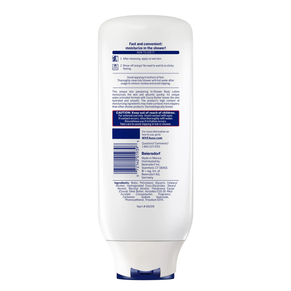 NIVEA Cocoa Butter In-Shower Body Lotion Non-Sticky Dry to Very Dry Skin 13.5 oz Enjoy instant moisture right in the shower with NIVEA Cocoa Butter In-Shower Lotion. This NIVEA cocoa butter body lotion for dry skin delivers moisture right in the shower that lasts for 24+ hours. NIVEA in-shower body lotion has a water-activated formula that moisturizes instantly with no sticky feel or residue. Enriched with cocoa butter, this lotion for dry skin leaves skin feeling soft and smooth. With this NIVEA lotion with cocoa butter, you can relax in the shower and take care of skin in a fast and easy way. NIVEA is proud to be one of the leading companies in the field of skin care products, with more than 130 years of expertise. NIVEA in shower lotion is a key part of a skincare routine and pairs well with NIVEA Body Wash. To use, simply apply your normal shower product and rinse off, then apply NIVEA Cocoa Butter In-Shower Lotion on wet skin while still in the shower, and rinse off. Thoroughly clean tub/shower with hot water after usage to remove residue and avoid slipping. One 13.5 fluid ounce bottle of NIVEA Cocoa Butter In Shower Lotion NIVEA in shower body lotion with cocoa butter delivers moisture right in the shower that lasts for 24+ hours This water-activated NIVEA body lotion is enriched with cocoa butter NIVEA in-shower body lotion with cocoa butter moisturizes instantly with no sticky feel or residue This NIVEA cocoa butter lotion leaves skin feeling soft and smooth, and is ideal for dry to very dry skin NIVEA is a trusted leader in skin care products, with more than 130 years of skin care expertise To use, simply apply your normal shower product and rinse off, then apply this in-shower lotion on wet skin while still in the shower, and rinse off Shipping We shipping from US for all orders! We offer FREE shipping on all orders! We ship within Three business days of payment, usually sooner. We use a selection of shipping services such as UPS, FedEx, USPS etc. We only ship to the lower 48 states, no APO/FPO addresses or PO Boxes allowed. Local pickups and combined shipping options are not provided at this time. Feedback Customer satisfaction is very important to us. If you have any problem with your order, please contact us and we will do our best to make you satisfied. Contact Us If you have any queries, please contact us via ebay. We usually respond within 24 hours on weekdays. Please visit our eBay store to check out other items for sale! Thank you for shopping at our store.