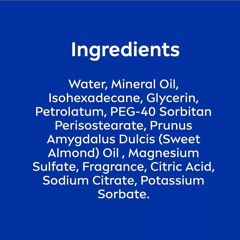 NIVEA Essentially Enriched Body Lotion For Dry Skin, Pack of 2, 16.9 Fl OZ Pump. Description Item model number 072140023973 Item dimensions L x W x H 4.37 x 4.13 x 10.5 inches Item Volume 16.9 Fluid Ounces Product Dimensions 4.37 x 4.13 x 10.5 inches; 2.6 Pounds Country of Origin Mexico Age Range (Description) Adult Special Feature homeopathic Brand NIVEA Manufacturer Beiersdorf, Inc. Body Area Full Body Ingredients Water, Mineral Oil, Isohexadecane, Glycerin, Petrolatum, PEG-40 S Main Purpose skin provides 48 hours of deep nourishing moisture Size Jumbo/Family Pack Product Line NIVEA Essentially Enriched Body Lotion for Dry Skin Features Tested & Trusted Color Blue Active Ingredients Prunus Amygdalus Dulcis (Sweet Almond) Oil, Magnesium Sulfate Sun Protection Factor (SPF) Description Volume Pack of 2, 16.9 fl oz UVA Protection Description MPN N/A 48 Hour Deep Nourishing: This NIVEA body lotion for dry skin and very dry skin provides 48 hours of deep nourishing moisture Smoother Skin: Infused with Deep Nourishing Serum and Almond Oil for skin, it reduces roughness after just one application Tested & Trusted: NIVEA Essentially Enriched lotion is dermatologically tested, and is ideal for those looking for a daily lotion for very dry skin Convenient Pump Bottle: NIVEA dry skin lotion pump bottle is a convenient option for home or office use Includes two (2) 16.9 fluid ounce pump bottle of NIVEA Essentially Enriched Body Lotion With NIVEA Essentially Enriched Body Lotion, nourished and deeply moisturized skin is not as far away as you think. This body lotion for dry skin and very dry skin is infused with NIVEA Deep Nourishing Serum and Almond Oil to nourish by locking in deep moisture. NIVEA Essentially Enriched Body Lotion reduces the roughness of skin, after just 1 application. With a formula that provides 48 hours of deep nourishing moisture, this dry skin lotion locks in moisture and gives noticeably smoother skin. NIVEA is proud to be one of the leading companies in the field of skin care products, with more than 130 years of experience. Daily body lotion use is a key part of a skincare routine and this product pairs well with NIVEA Body Wash as part of a daily skin care regimen. This body lotion can also be used as a hand lotion or foot lotion. To use, smooth NIVEA Essentially Enriched lotion over body, apply daily.