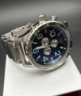 Free shipping from Miami, Florida! Delivery time 1-4 business days. Item Description: Design & Build Bold and oversized 51 mm stainless steel case with brushed and polished surfaces, complemented by a matching steel bracelet with a fold-over clasp Deep blue dial featuring large Arabic numerals combined with luminous index markers and hands for enhanced nighttime readability The crystal is hardened mineral glass, offering solid scratch resistance Timekeeping Reliable quartz movement (battery-powered), providing accurate, ticking time with chronograph functions Chronograph includes a 24-hour subdial and a separate seconds counter , plus a date display , ideal for versatile use Durability Features Water resistance rated at 30 ATM (300 meters) – suitable for serious surface water sports, professional marine activity, and recreational diving Equipped with a screw-down crown and case back , enhancing protection against water ingress Diameter : 51 mm Thickness : Approx. 8 mm Band width : Approx. 25 mm Exceptional water resistance (up to 300 m), matching durability needed for aquatic and professional use Reddit . Sturdy build and rugged industrial styling with highly readable dial and chronograph usability. Chronograph + date functionality coupled with a luminous dial provides practical utility. Attribute Specification Case Diameter 51 mm Thickness ~8 mm Material Stainless Steel (brushed & polished) Dial Color Blue with luminous numerals & indexes Movement Quartz (battery-powered) Water Resistance 30 ATM / 300 m Complications Chronograph (24h, seconds), Date display Crystal Mineral, scratch-resistant Bezel Unidirectional, stainless steel Bracelet Width ~25 mm, steel Crown Screw-down for added water protection