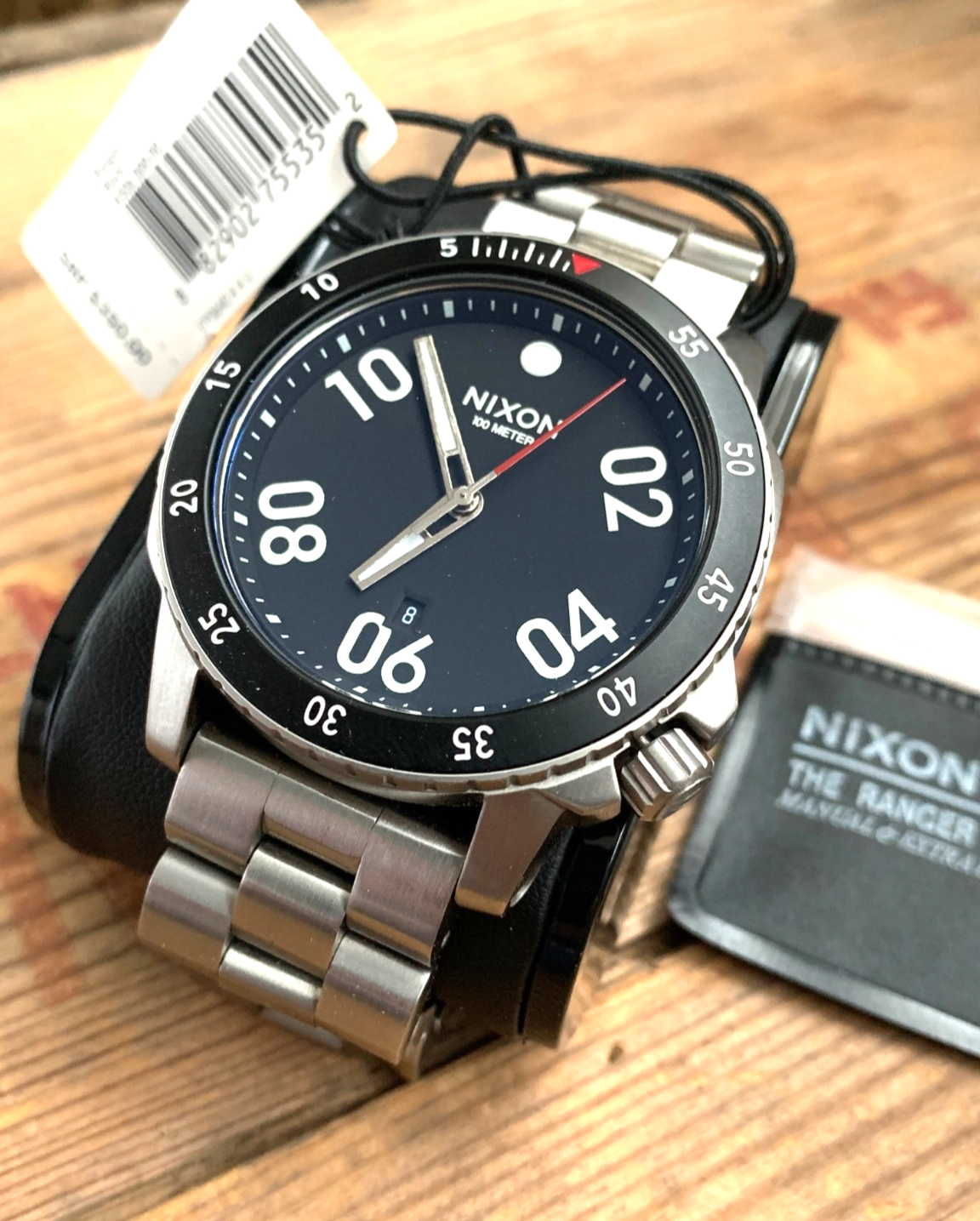 NXON RANGER Stainless steel with tags A506-000-00 Like new condition! 4 O’clock position crown (to reduce crown digging into wrist) Rotating bezel (for timing/timer functions) Date (because who doesn’t want a date) Luminous hands and markers Double locking bracelet with screw in lugs (so it won’t fly off your wrist with your crazy motions) 100m 10atm water resistance (to stay dry while you rage the rapids. Or wash your hands) 44mm case (big and bold is cool) 22mm lug width (better than 21mm lugs!) 11mm case thickness (good substantial size) Original retail price: $350 (but you get it fo less!) Ships with care within Canada