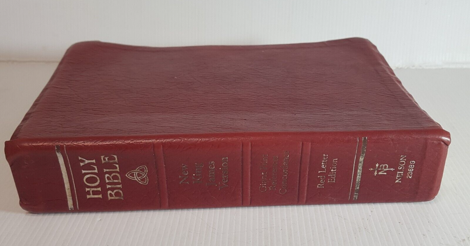 Dive into the timeless wisdom of the Holy Bible New King James Version, presented in a user-friendly Giant Print Reference Red Letter Edition. This hardcover treasure, published by Thomas Nelson Publishers in 1984, offers a comfortable reading experience with its large print and leather-bound design. Measuring at 21.5 cm in length and 5.5 cm in height, it's a substantial addition to any personal library or study. Tailored for a wide audience, from ages 9-12 to young adults and adults, this Bible is not only a spiritual guide but also a piece of vintage literature. Its rich content, encompassing both the Old and New Testaments, is perfect for those seeking religious enlightenment and spiritual growth. The Red Letter Edition distinguishes Jesus' words in red, adding an extra dimension to your reading journey.