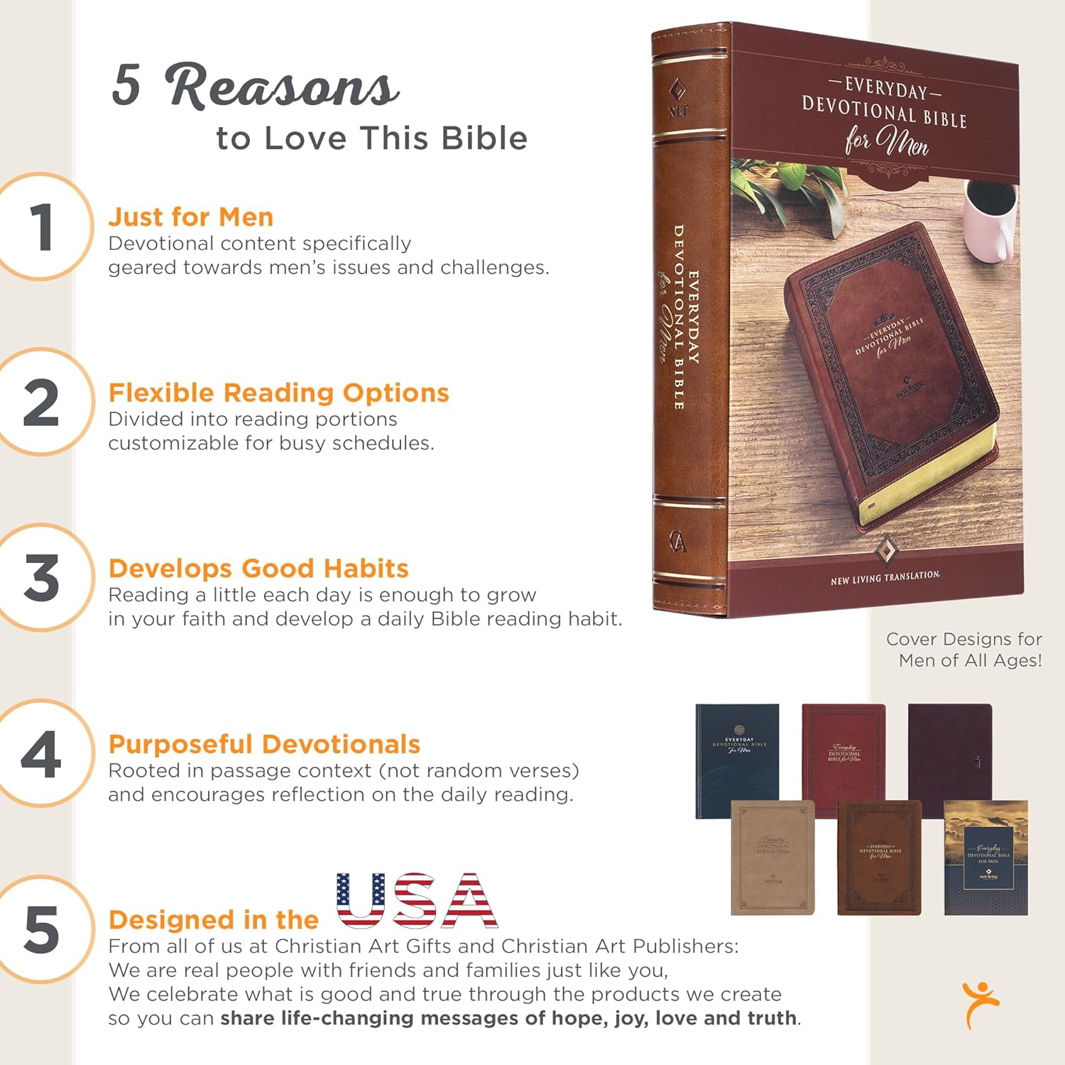 Fast Shipping Great Customer Support Satisfaction Guaranteed DESCRIPTION Shipping Shipping Shipping All domestic packages are shipped for Free (Unless other shipping method was selected during the checkout) Most items ship and arrive much sooner than the estimate delivery date. Usually within 2-3 days from payment. However, we have longer estimates to compensate for the occasional delay or supply chain breakdown. We do not accept P.O. BOXES - PLEASE PROVIDE A PHYSICAL ADDRESS Return Return Return In the event that you would like to return your purchase, we allow returns that are processed within the defined return date (the return date is to be found in the return policy/shipping and handling section) Please contact us for a return authorization and the return shipping address. Payment Payment Payment PayPal is our preferred method of payments it's the quickest, easiest and most secure way to pay for your goods or services online. PayPal offers buyer and seller protection should there be a problem. If you do not have a PayPal account, to get started and buy your first item with us is very easy. Simply click on the 'Buy It Now' button and follow the eBay checkout steps. Select PayPal as the payment method you then will be given the chance to enter your card details in to PayPal's secure checkout in order to pay for your order. Once the payment has been made, you will then be given the opportunity to make your own PayPal account to make paying for your items in the future very easy. Should there be a problem with payment please do let us know. Feedback Feedback Feedback Customer satisfaction is very important to us. If you have any problem with your order,please contact us and we will do our best to make you satisfied, please do not leave a negative feedback before we resolve your problem. We guarantee that your issue will be solved quickly. As long as you are happy with your purchase of , please leave us a positive feedback. Your feedback is very important to us it affects our search placement on eBay. We will leave a positive feedback for you in return automatically once we receive your feedback. Contact Us Contact Us Contact Us If you have any queries, please contact us via ebay. We usually respond within 24 hours on weekdays. Thank you for visiting our ebay store! Encourage the spiritual discipline of daily Bible reading when you give the Chestnut Brown Faux Leather NLT Everyday Devotional Bible for Men as a birthday gift to a son or grandson. The devotional insights in this Bible will encourage him to apply Scriptural wisdom to his daily life and flourish in his faith.The devotional Bible is covered in rich chestnut brown faux leather, and gold gilt-edging is applied to the page edges. On the front cover, you'll find a double heat-debossed frame with an intricate floral fill, complemented by additional heat-debossed corner scroll designs within the inner frame. The title, presented in gold-foiled letters and topped by a heat-debossed flourish, sits prominently in the middle of the frame, with the version name heat-debossed below it.Everyday Devotional Bible for MenNew Living TranslationThe heat-debossed frame is repeated on the back cover where the title is replaced by a heat-debossed floral design shaped like a diamond. The spine features the title and version reference accented by gold-foiled faux spine ribs.As you explore the devotional Bible, you'll notice its single-column format, which provides a comfortable reading experience. The 10-point text is stylishly printed in two colors: black and brown. To ensure quality, the convenient lay-flat binding is Smyth-sewn. Don't miss the ribbon marker that is attached to the spine to help you track your progress while reading. For your convenience, a presentation page is included in the front of the Bible. This page can be personalized when you give the Bible as a gift.With 730 unique devotions, each paired with select Bible passages from the Old and New Testaments, Psalms, and Proverbs, this Bible is designed for long-term use. You can return to it year after year, gaining fresh insights and applying Scriptural truths to your daily life . The Bible uses the inspirational text of the NLT, known for its ease of understanding and ability to facilitate deep meditation. This translation complements the insightful devotions written by Mike Beaumont.The Chestnut Brown Faux Leather NLT Everyday Devotional Bible for Men is a gift that your son, husband, or father will return to year after year. Its 730 unique devotions will guide him through the Scriptures, providing wisdom and guidance on all aspects of life. Help the men you care about grow spiritually and navigate life's challenges when you give the Chestnut Brown Faux Leather NLT Everyday Devotional Bible for Men as a Christmas or Easter gift.Heat-debossed frame with intricate floral fill and corner scroll cover designChestnut brown faux leatherGold-foiled titleHeat-debossed translation referenceFlexcoverNew Living TranslationSatin ribbon marker1824 gilt-edged pagesTwo-color interiorSingle column formatPresentation pageDaily portions from Psalms, Proverbs, Old and New Testament730 inspiring devotional insights by Mike Beaumont10-point textPackaged in a full-color printed cardstock sleeveSize: 9.6" x 6.8" x 1.8" (244 x 173 x 46mm) NLT Holy Bible for Men Devotional, Vegan Leather, Daily Reading Plan Click here to see description Fast Shipping Great Customer Support Satisfaction Guaranteed DESCRIPTION Shipping All domestic packages are shipped for Free (Unless other shipping method was selected during the checkout) We ship within two business days of payment, usually sooner Standard FREE shipping takes between 3-5 business days Expedited shipping takes between 2-3 business days Overnight shipping takes between 1-2 business days We do not accept P.O. BOXES - PLEASE PROVIDE A PHYSICAL ADDRESS We Ship Globally using ebay's GSP, the item is sent to a logistic center in KY and shipped from there to th