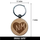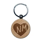 NM New Mexico State in Heart Engraved Wood Round Keychain Tag Charm