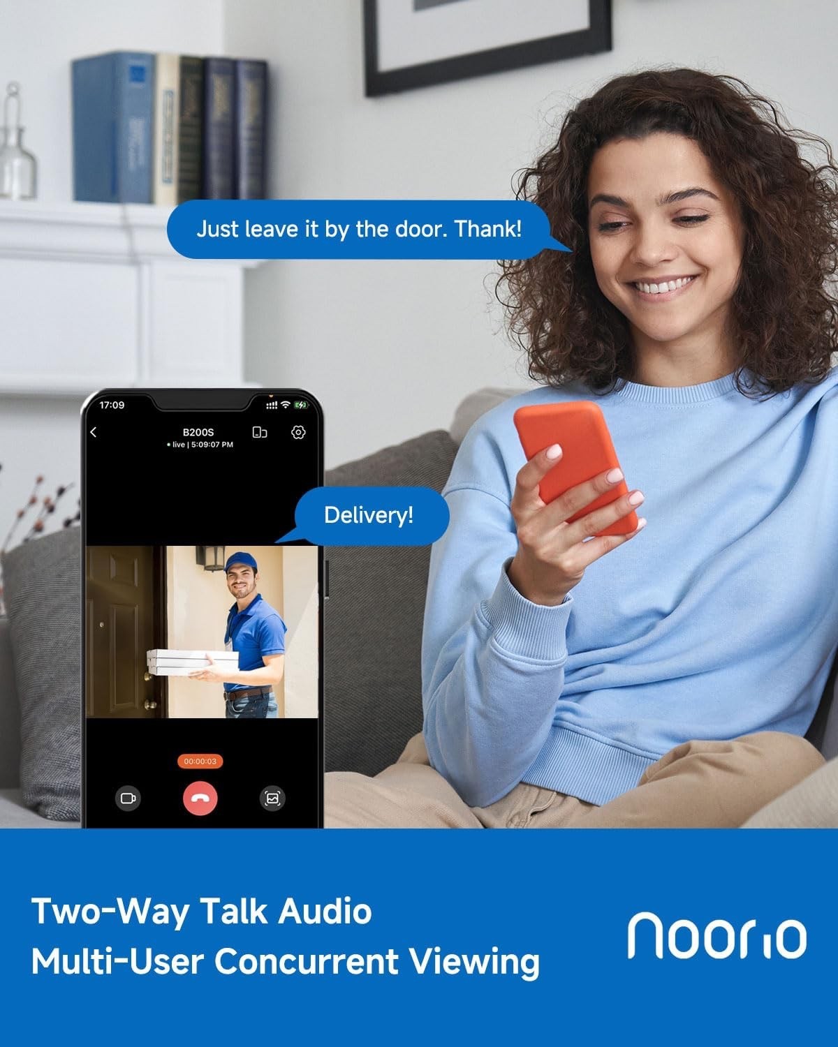 Magnetic Design + Multi-Scene Usage - No drills, no wires, no hassle! Our powerful magnetic mount lets you securely attach this security camera to any metal surface in seconds—fences, garage doors, warehouse eaves, appliances, and more. Its flexible installation makes this wireless magnetic camera perfect for multiple scenarios, including porches, patios, living rooms, bedrooms, garages, and beyond. Crystal-Clear 1080p + Color Night Vision - See everything in sharp 1080p HD, day or night. With full-color night vision and a built-in spotlight, it’s ideal as a pet camera, dog camera, or home security camera—capturing clear details even in low light. Smart AI Detection + Two-Way Talk - AI reduces false alerts by distinguishing people and pets. Custom motion zones let you focus on what matters. This surveillance camera also features two-way audio, allowing you to listen and communicate via the Noorio App—perfect for use as a baby monitor or to check on pets (Note: Noorio B200S ONLY Support 2.4GHz WiFi, NOT Support 5GHz WiFi). Long Battery Life + IP66 Weatherproof - Charge once and enjoy up to 3 months of use, depending on usage scenarios and patterns. Noorio security camera features an IP66 waterproof rating, withstanding rain, snow, and extreme temperatures for year-round reliable performance. Our surveillance cameras are the ideal choice for comprehensive home security, protecting your property regardless of weather conditions. 32GB Free Local Storage + Zero Monthly Fees - This indoor security camera comes with built-in 32GB storage (SD card not supported), allowing you to securely store important footage locally. Enjoy all the features of the Noorio security camera with complete peace of mind—no subscription required. A versatile wireless outdoor security solution that works seamlessly with Alexa. Buyer pays actual USPS shipping cost. US Seller - not a drop shipper. I pack and ship all items. All items are new in original packaging. Payment is due within 24 hours of auction close. If you wish to combine your order with a future auction, please submit payment for your item and contact me. After you have paid for the item, I will hold it as long as you wish and combine with future orders. I will reduce the shipping cost when you are ready to have all of your orders shipped.