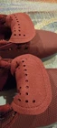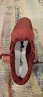 Like-new pair of red womens size 8.5 U.S. NOBULL cross trainer shoes. Rubber soles, upper made of 'Superfabric(c)' with suede trim. Standard red laces. "NOBULL" logo on sides are also in red, logo is black & white on the tongue. Soles are marked with "JUST THE HORNS" on the exterior side of each shoe. Bottom of soles have *(asterisk) pattern. Removable insoles. Like-new condition. No damages, worn parts, tears or staining. Excepting the left shoe has its insole logo slightly worn. See photos.