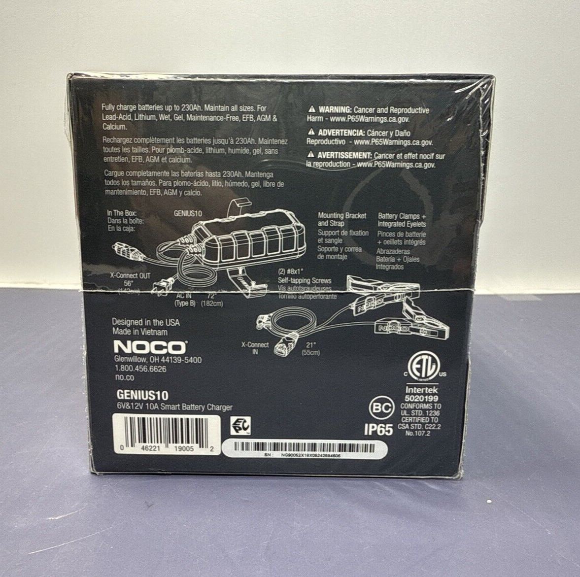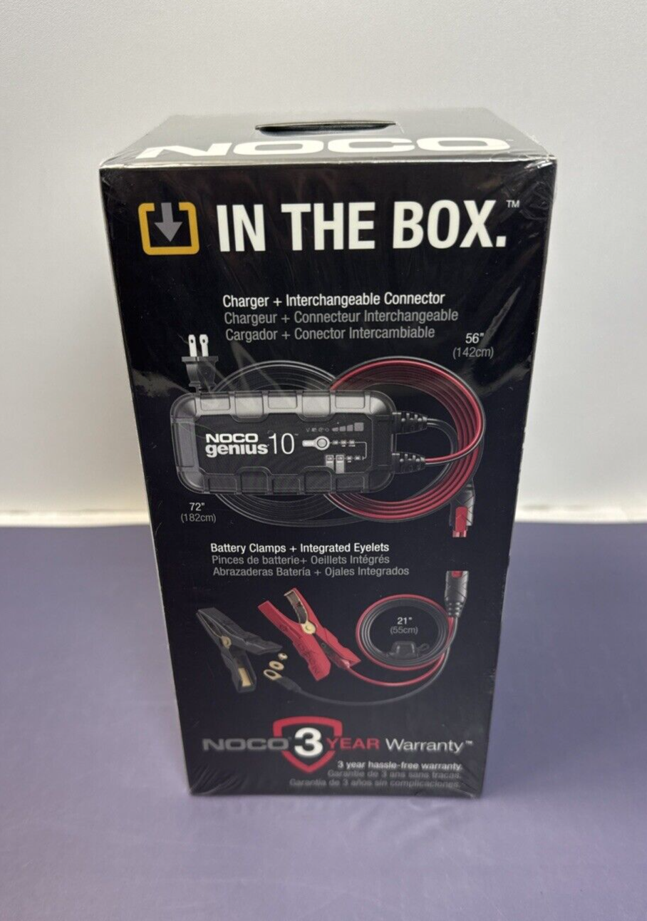 Voltage:6V/12VCountry/Region of Manufacture:VietnamPeak Amps:10AmpUPC:046221190052Brand:NOCOManufacturer Part Number:GENIUS10gtin13:046221190052Accessories:Clamps, User ManualType:ChargerFeatures:Automatic, Portable, Reverse Polarity ProtectionCapacity:120000mAhSet or Single Item:Single Item