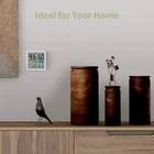 【Fast Refresh & High Accuracy】This digital indoor thermometer room hygrometer refreshes every 10s to provide updated and the latest accurate readings. Wide measuring range that measures temp from 14.2˚F-140˚F(-9.9˚C-60˚C ) and relative humidity from 10%-95%, temperature accuracy: +-2˚F(1˚C); relative humidity accuracy: +-3%RH 【Air Comfort Indicator】Digital moisture meter with humidity indicator bar quickly shows DRY/COMFORT/WET air conditions with a glance. Reminding you to adjust the humidifier or dehumidifier. It is perfect for monitoring your family's living conditions to create the right environmental state to effectively prevent colds, dry skin, asthma, allergies and more 【3.34in LCD Display & Easy to Read】Small humidity temperature monitor with clear bold numbers features neat and slim border, easier to read from any angle and distance. While it's portable and lightweight to carry around easily. Switch Celsius/Fahrenheit by pressing '+', 12h/24h selector by pressing '-'. NOTE: No backlight function 【Minimalist Design with 3 Mounting Options】The inside humidity gauge thermometer can be mounted in a variety of ways: desktop stand, magnet attaching, stick on the wall via the metal adhesive pad. You can stick or place it anywhere you like, such as fridge, counter, living room, greenhouse, baby room, nursery, kitchen, basement, office, conservatory, guitar room, office, garden, cellar, warehouse and more 【Battery Powered and Long Battery Life】Coming with 2 x CR2032 button cell batteries, each battery lasts 8-12 months. The NOKLEAD indoor hygrometer also display the time and month date. If you have any issues with the humidity reader instrument, please contact us and be willing to provide the best solution for you 【Upgraded Calibration Function】:When the product placement or environmental factors impact data accuracy,you can calibrate the sensor for the most-accurate humidity and temperature data. (Temp:Max +-5℃/+-41℉;Humidity:+-10%RH.)