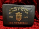 For sale is a very nice North Carolina Highway Patrol 53rd Anniversary Limited Edition pocket knife. The commemoration is for the years 1929 - 1982. This knife is one of 750 produced and is stamped #393. It comes in its original padded show case and is in very good condition. Blades have no rust and are tight in the handle. This is a very nice piece of memorabilia. Please review the photos to determine the condition for yourself prior to purchase. Thanks for looking.