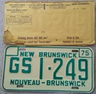 Here is a new old stock 1975 New Brunswick, Canada, government service license plate. The one you see is the one you get. It was never used. It comes with the original mailing envelope.