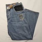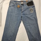 This pair of G-Unit denim blue jeans is the ultimate vintage Y2K HIP HOP statement piece. With a relaxed fit and a wide-leg style, these jeans are perfect for any season and any occasion. The button closure and embroidered logo accents add a touch of detail to the solid patterned denim fabric, and the 34-inch inseam ensures a comfortable fit for a size 42 waist. Machine washable and easy to care for, these jeans are a must-have for any fashion-forward man's wardrobe. Created in Thailand, these jeans are premium quality and reflect the best of hip hop culture. Add these to your collection today and make a bold statement with your style.