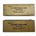 These tubes are new in box (NIB) and have not been tested. They are older stock and may have accumulated some light dust over time, which can be cleaned if desired. The original boxes show signs of age, including possible wear or discoloration. Tubes appear to be in excellent cosmetic condition, with no visible damage to the glass or pins. Due to their untested nature, they are sold as-is . Please review all photos carefully for additional details. These are not a matched pair.