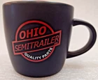 A matching pair of promotional ceramic coffee mugs featuring a classy, mat black outer finish with glossy red interior and "OHIO SEMITRAILER QUALITY PARTS" logo. These will each, satisfactorily hold 12 ounces of your favorite beverage but will totally excel at holding hot coffee while you look awesome holding one. These mugs are in unused new condition. Thanks for looking.