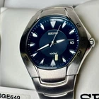 New battery installed! The New old stock Seiko 39mm Men’s 100M Blue Dial Stainless Steel Classic Watch 7N42-0AK0 is a stylish and reliable timepiece suitable for men. Featuring a classic design with non-arabic numerals on a blue dial, this watch has a screw-down case back and scratch-resistant hardlex crystal for added durability. With features like a second hand, date display, and luminous hands and markers, this wrist watch is both practical and fashionable. The polished stainless steel case and bracelet, along with its water resistance up to 100 meters, make it suitable for everyday wear or outdoor activities. Made in Japan by Seiko, this watch comes with its original box, papers, and additional accessories.