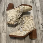 NOS VTG Lace Wedding Shoes Boots Cosplay Cream Lace Up Spain Womens Sz 5B New. Shipped with USPS Ground Advantage.
