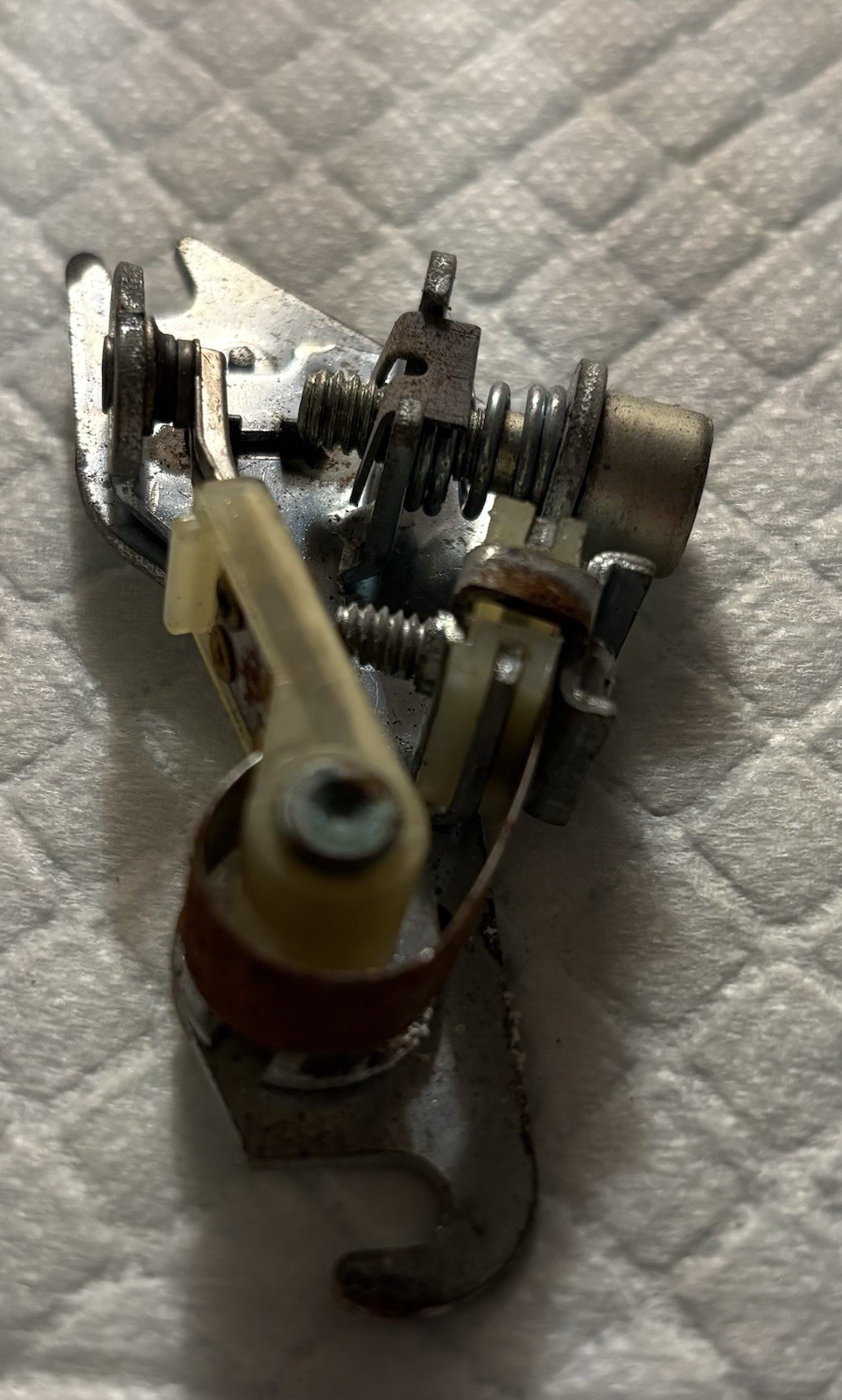 Up for sale is a vintage NOS (New Old Stock) ignition contact set in its original “Quality Parts” box. This is a genuine American-made points set still in remarkable condition for its age. Part Information: ∙ Brand: Quality Parts (APM) ∙ Part Number: APM-950PE ∙ Replaces: D-106PS and OEM 1966289 ∙ Hand-written note on box reads “66 Ford” — consistent with the OEM cross-reference ∙ Made in U.S.A. Condition Notes: ∙ Original box present, shows age-related wear, creasing, and yellowing — expected for a vintage NOS part ∙ Contact set itself appears complete and intact with breaker plate, pivot arm, rubbing block, contact points, spring, and adjustment hardware all present ∙ Some light surface oxidation/tarnish on metal components consistent with long-term storage ∙ Never installed — removed from box only for photographing Fits: 1966 Ford vehicles equipped with conventional breaker-point ignition systems (buyer responsible for verifying exact application) Shipping: First Class or Priority Mail — will be packed securely. Combined shipping available. Questions welcome — happy to provide additional close-up photos on request. All items are shipped priority mail only with tracking number.