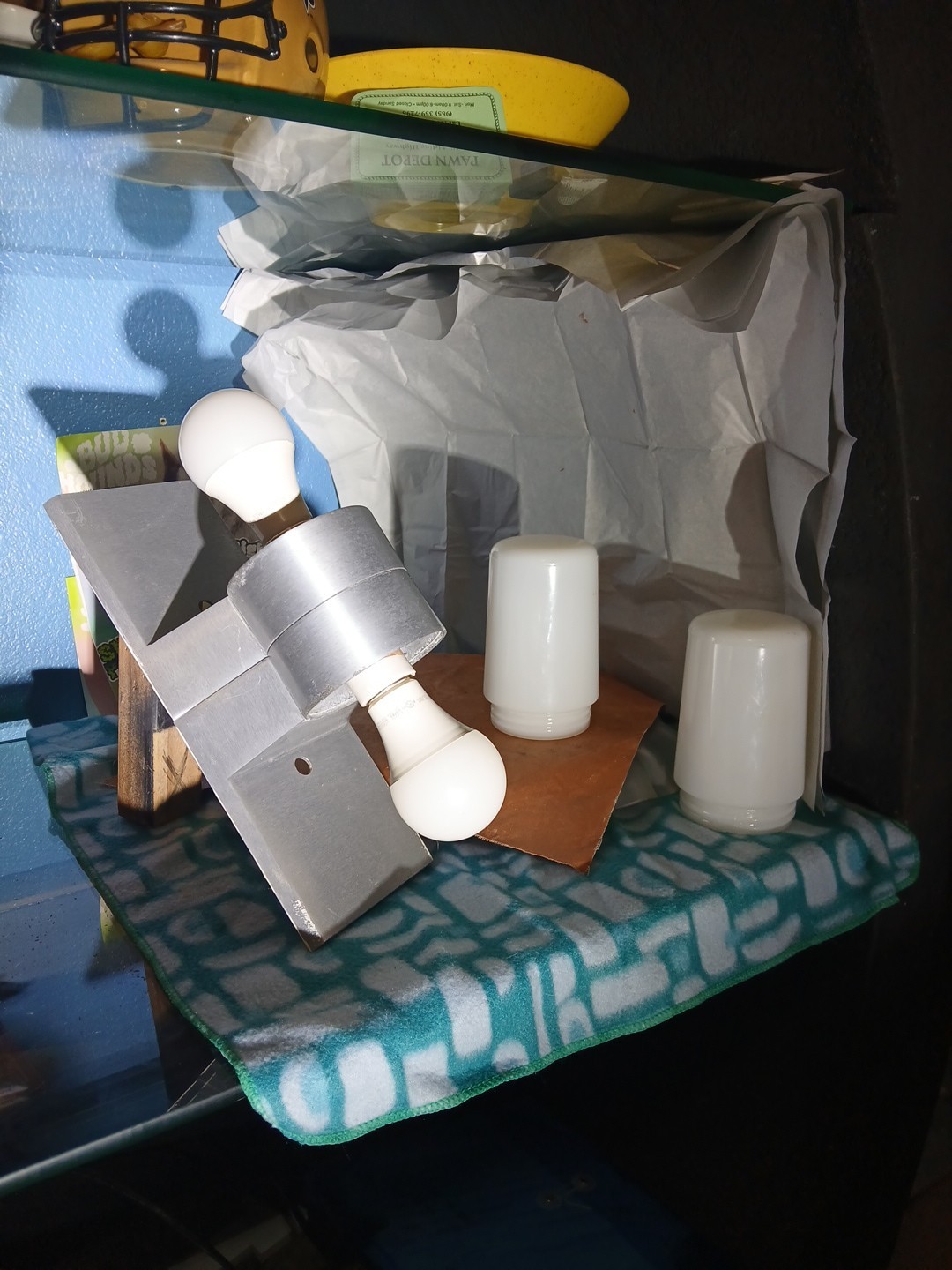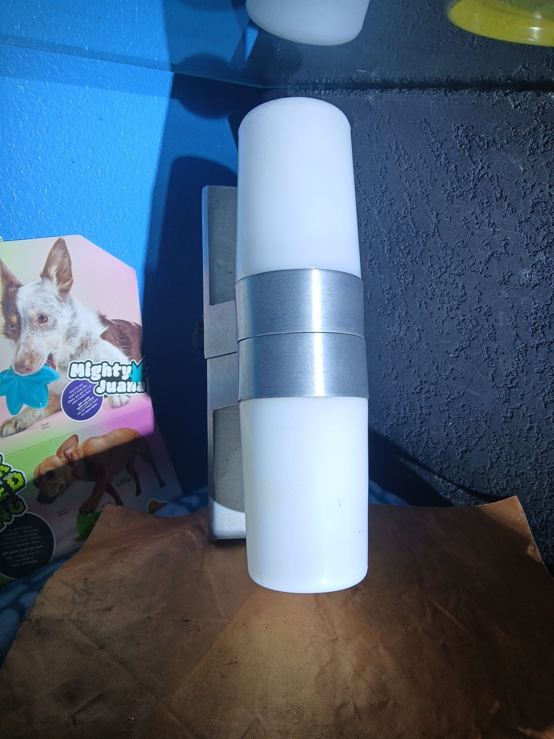 The NOS Vintage Prescolite MCM Atomic WB 2-2 Wall Sconce is a stylish and unique lighting fixture that showcases a Mid-Century Modern design with a brushed aluminum and opal white glass finish. This wall-mounted sconce adds a touch of retro charm to any indoor space, especially in a bathroom or porch setting. Manufactured by Prescolite, this cylindrical shaped wall sconce priced as one pair features a silver and white color scheme, making it a standout piece for those looking to add a vintage flair to their home decor. 7 more individually priced. not a package deal unless purchases made.