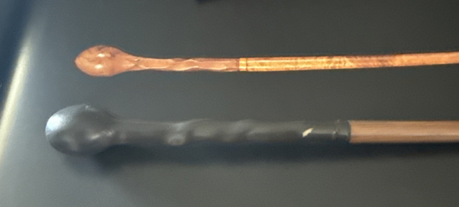 The Wizarding World Wand - Remus Lupin is an item inspired by the character Remus Lupin from the Harry Potter franchise. This fantasy-themed wand is a must-have for fans of the series, allowing them to channel their inner wizard and immerse themselves in the magical world created by J.K. Rowling. Perfect for adding a touch of enchantment to any desk or shelf, this wand is a unique and whimsical addition to any fan's collection. There is a slight nick in the handle.