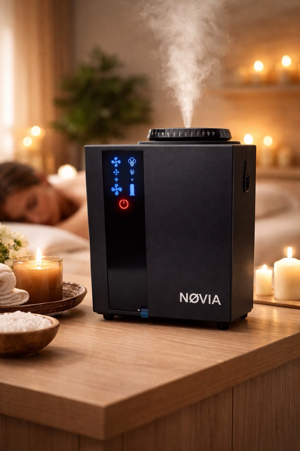 Upgrade your space with the NOVIA A300 Smart Scent Diffuser. Designed for modern homes, offices and spa environments, this 200ML professional diffuser delivers consistent and adjustable fragrance coverage up to 500m². Control everything directly from your phone using the “Scent Master Pro” app via Bluetooth. Features: • 200ML oil capacity • Covers up to 500m² • Bluetooth app control • Adjustable intensity levels • Ultra-quiet 40dB operation • Sleek modern black design • Ideal for home, spa, office, Airbnb