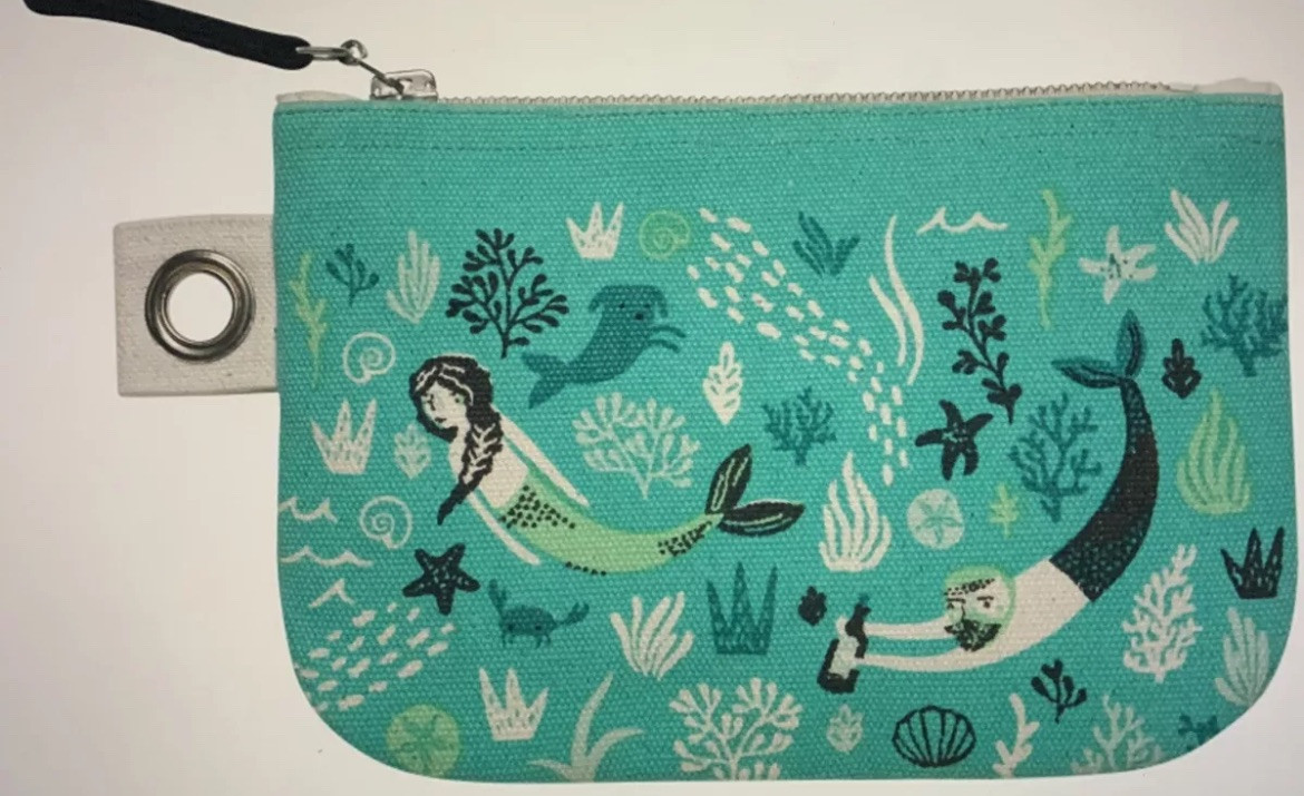 This amazing Danica Now Designs 'Sea Spell' bag is perfect for the sea and mermaid lover! It is a durable cotton fabric adorned with "under the sea turquoise motif", including mermaid, merman and all of your ocean/sea favorites. It has a ziptop and roomy interior, perfect for cosmetics and school supplies, alike.