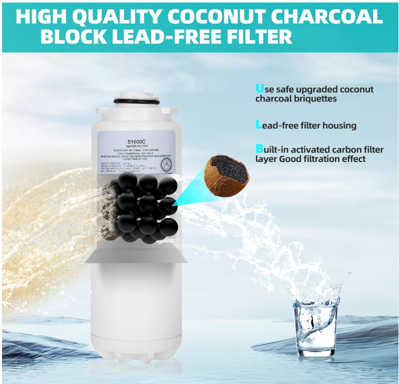 【Hassle-Free Purchase】If there is any problem with your 51600C filter, we will resend you a new set. We have a professional customer service team, your satisfaction is our constant pursuit. Our 51600C Replacement Filter has been rigorously tested before leaving our factory, you can rest assured to buy it. 【Material】Water filter 51600C is a spun polypropylene pre-filter that prevents the entry of large coarse sediments and particles. To prevent clogging of the filter media. 51600C filter replacement, strictly control the filter material, using high-quality activated carbon block, which can improve the taste of water. 【Lasting Life】Replace for 51600C filter should be replaced every 6,000 gallons after installation or 1 year after installation. Using a replacement for ek fountain filter replacement 51600C saves money by reducing the number of filter changes. 【Compatible Models】Filter 51600C is compatible with ezh2o filter replacement bottled water filling station models LZS8WSLP, LZS8WSSP, LZSTL8WSLP, LZSTL8WSSP. Please check the model number before purchasing to avoid any trouble for you. 【Provide Healthier, Fresher Water】The 51600C filter effectively reduces chlorine. The water filter 516000C features a radial flow channel design that provides greater filtration surface area. Water filter for ezh2o water fountain filter, in order to provide you with healthy water at all times. 【No Chip】The 51600C filter is a replacement for the EWF6000 and does not contain an RFID chip. When using our filters, you can remove the RFID chip from the original filter and install it on our filter. You can rest assured that the RFID chip and the water filter 51600C are perfectly compatible.