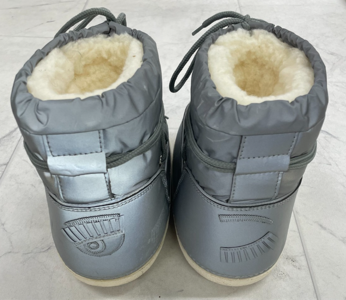 Brand: CHIARA FERRAGNI Size:35-37 Color: Grey Condition: NEW WITHOUT BOX BOOT HAS MINOR SCRATCH MARKS AND GLUE RESIDUE PLEASE REVIEW PHOTOS ABOVE!! Measurements are aprox: Circumference / Opening: 15.5'' Shaft Height: 7.5'' Width: 4.5'' Sole:10'' PLEASE FEEL FREE TO ASK QUESTIONS BEFORE PURCHASE Thank you!