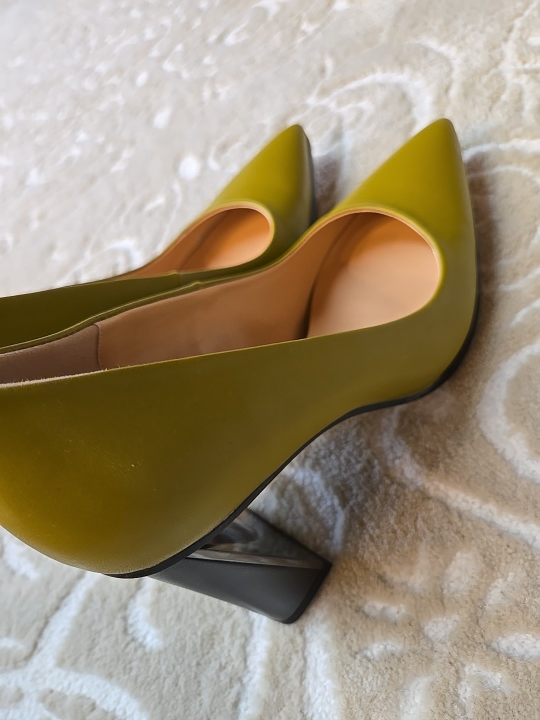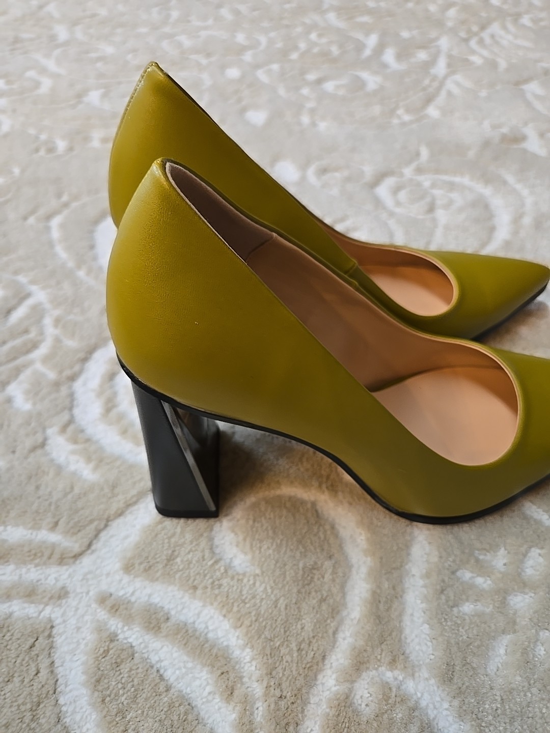 Add a touch of sophistication to your outfit with these stylish Guavaivy pointed toe heels. The olive green color and slip-on closure make them perfect for both business and party occasions. The high block heel is both comfortable and chic, with a rubber outsole for added support. These size 9.5 pumps are made of synthetic upper material and have a standard shoe width. They are suitable for all seasons, including winter, summer, fall, and spring. Don't miss out on this timeless addition to your shoe collection! New Without Box 3.75" heel Please see photos for measurements and details :)