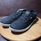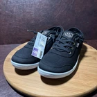 These Skechers Bobs B Cute sneakers are women's slip-on shoes in a classic black color with copper accents on the logo. They feature a comfortable memory foam insole and breathable canvas fabric, making them suitable for casual wear or active pursuits like walking. The low-top sneakers have a rubber outsole for traction and are designed with a preppy sports theme, perfect for all seasons. Ideal for a size 8 US shoe size and a UK size 5, these Skechers BOBS sneakers offer both style and comfort for everyday use.