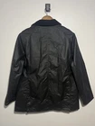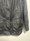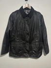 This is a women's Barbour Bedale jacket in black, made of waxed cotton material. It is a waterproof softshell jacket in size US 12 (UK 16). The jacket features the classic Barbour style and is brand new without tags (NWOT). Perfect for outdoor activities, this jacket combines functionality with a sleek design, suitable for everyday wear during the cooler seasons.
