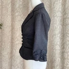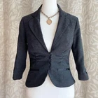 Office Siren Blazer in Dark Gray NWOT Description: form fitting dark gray 3/4 sleeve ruched front blazer by CR Signature in US women’s size S. Condition: perfect condition, never worn. New without tags Lay flat measurements: - pit to pit: 16 inches - shoulder to shoulder: 13 inches - waist: 13.5 inches - hips: 17 inches - shoulder to hem: 20.5 inches - sleeve length: 15.5 inches Mannequin measurements: - bust: 32 inches - hips: 24.5 inches - waist: 34 inches