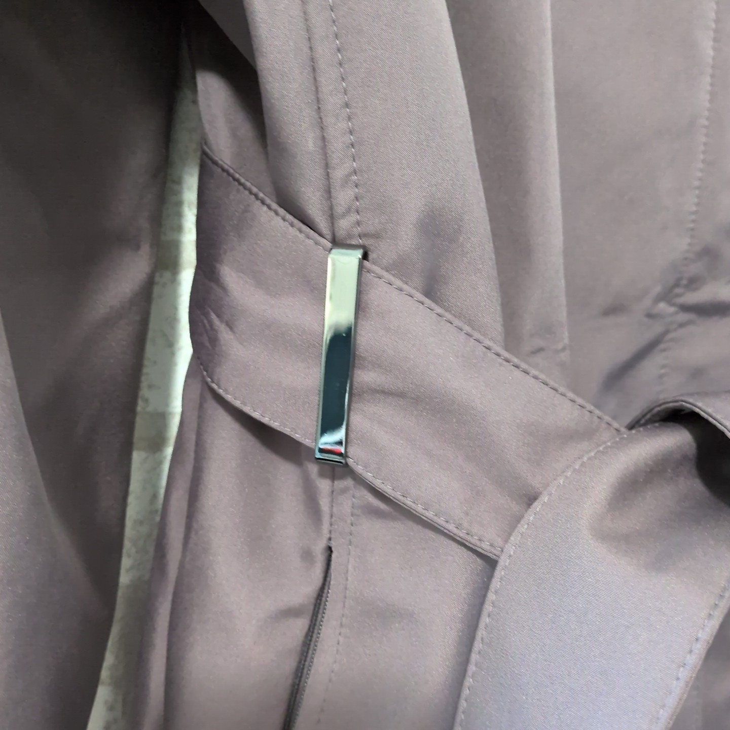 The NWOT Calvin Klein Tie-Waist Hooded Women's Rain Jacket in size 2XL is a stylish and practical outerwear option for women. Made of polyester with a purple color, this long-length jacket features a tie closure, long sleeves, and a removable hood. It is designed to be windproof, water-resistant, and lightweight, making it perfect for rainy days. With a classic Calvin Klein brand and a versatile rain coat style, this jacket is a must-have for any woman's wardrobe.