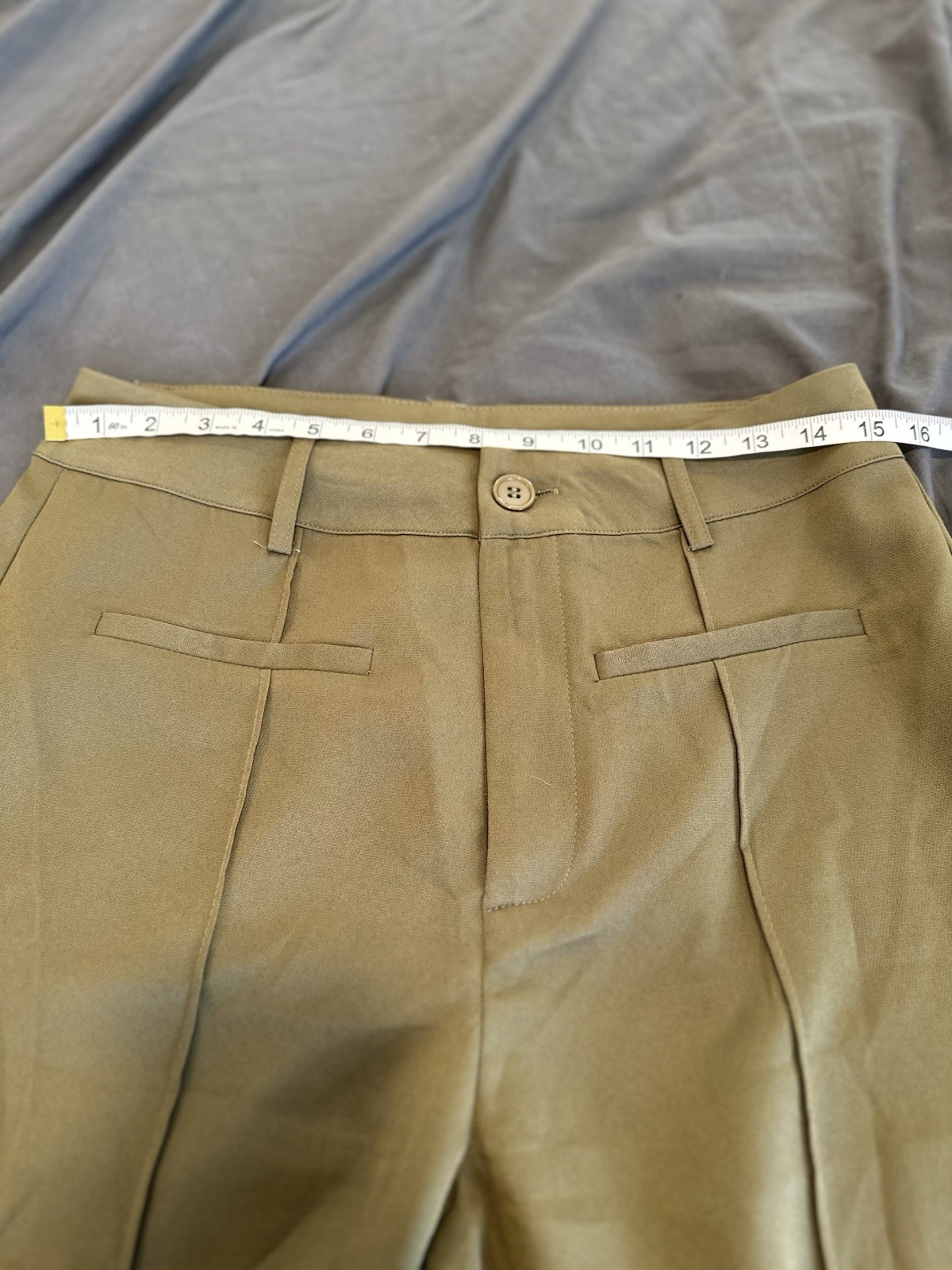 NWOT Cider Women’s Sz: L Olive Green Hight Waist Wide Leg Dress Pant Trouser. Lightweight. Flowy. Front slit pockets. Excellent condition. Never worn. No rips, stains or defects. Please see pictures for measurements.