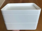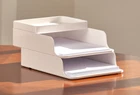 Keep your desk organized with this stackable paper/letter/file organizer tray set from Aplum. The set includes 2 A4/letter trays and. mini tray. Made of durable plastic and manufactured in Korea, this set is perfect for everyday use in the office or at home. The trays are compatible with various desk accessories and are ideal for organizing a range of documents. Get your hands on this luxury Aplum tray set today and keep your workspace tidy!