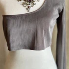 NWOT Manière de Voir One Shoulder Crop Top Description: gray ribbed super stretchy, one shoulder, long sleeve crop top by Maniere de Voir in US women’s size 12 or XXL (UK size 16). 90% polyester 10% elastane. She’s giving minimalist rave chic 🩶 Condition: Perfect condition. Never worn. Lay flat measurements: - pit to pit: 16 inches - shoulder to shoulder: - waist: 15.5 inches - shoulder to hem: 13 inches - length of sleeveless side: 7 inches - sleeve length: 25 inches Mannequin measurements: - bust: 32 inches - hips: 24.5 inches - waist: 34 inches
