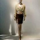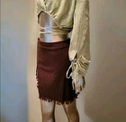 NWOT PLT Brown Linen Bamboo Embellished Slit Fringe Hem Mini Skirt Size 8 Color Chocolate Brown * These are my photos of the actual item Measurements Waist 31" Hip 36" Length 17 1/2" from Waist to bottom of fringe Side Zipper closure Bamboo Ring Embellishment Mini length Rough Fringe Hem Non-Stretch *Sold out online 39% Viscose 27% Polyester 21% Linen 13% Cotton Machine wash * Crop top is available in a separate listing. * If you want to purchase the outfit, ask me for a price on both.