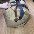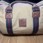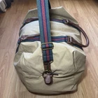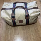 Size: Large Color: Tan Theme: Classic, Designer, Preppy, Travel Material: Canvas Style: Duffle Features: Adjustable Strap, Detachable Strap Product Line: Ralph Lauren Weekender Duffel Brand: Ralph Lauren Fabric Type: Canvas Closure: Zip Occasion: Travel, Casual, Business, Formal, Workwear Pattern: Solid/Striped Department: Unisex Adults