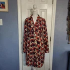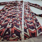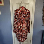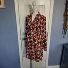 Step out in style with this charming Outback Red button-up dress, perfect for any occasion. Made from lightweight fabric, this size S dress features a captivating geometric pattern in rich hues of purple, red, and cream. Its versatile design includes a tie waist for a flattering silhouette, long sleeves, and a classic collar, making it an effortless choice for both casual outings and chic events. - Lightweight, breathable fabric - Stylish geometric pattern - Flattering tie waist - Long sleeves and classic collar - Perfect for day or night wear