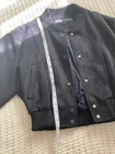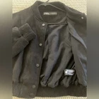 NEW without tag (NWOT) Zara cropped bomber jacket with an exterior that looks like black suede! Beautiful and stylish jacket, just not the right shape for my body. - Black snap closure - Ribbed cuffs and neck - No collar at the neck for added versatility and style - Pockets on both sides in the front - Soft and cushy feel on both the exterior and interior lining (see last pic for the up close photo of both) - Cropped at approximately 19 inches long from highest point on shoulder to bottom From a pet-free and smoke-free home!