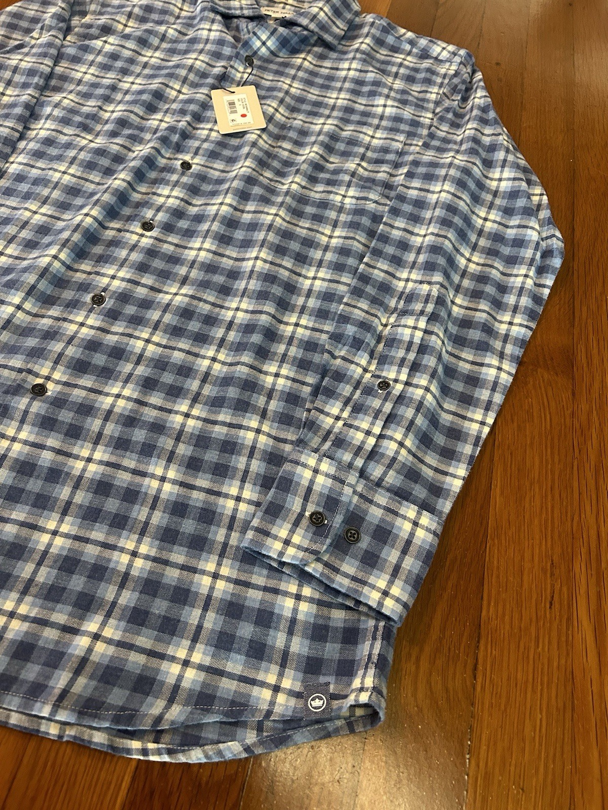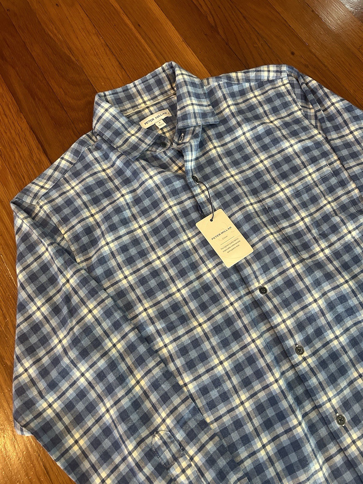 Size: Small Condition: New With Tags MSRP: $160 The NWT Peter Millar Men Small Ocean Blue Crown Plaid North Bay Flannel Cotton Shirt is a stylish and versatile addition to any man's wardrobe. Made of comfortable cotton flannel in a preppy multicolor plaid, this shirt features a collared neckline, long sleeves, and a button closure for a classic look. The regular fit and spread collar make it suitable for casual, workwear, or travel occasions all year round. With its easy-care fabric and machine washable design, this shirt is a practical and fashionable choice for the modern man.