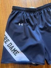 This is a new with tags (NWT) pair of 2018 team-issued Notre Dame women's basketball shorts by Under Armour in size large. The shorts are officially licensed and feature the University of Notre Dame Fighting Irish team. They are designed for women and are a souvenir item.